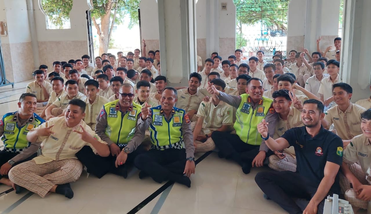 Cara Unik Dirlantas Polda Aceh Sampaikan Pesan Kamseltibcar Lantas kepada Pelajar