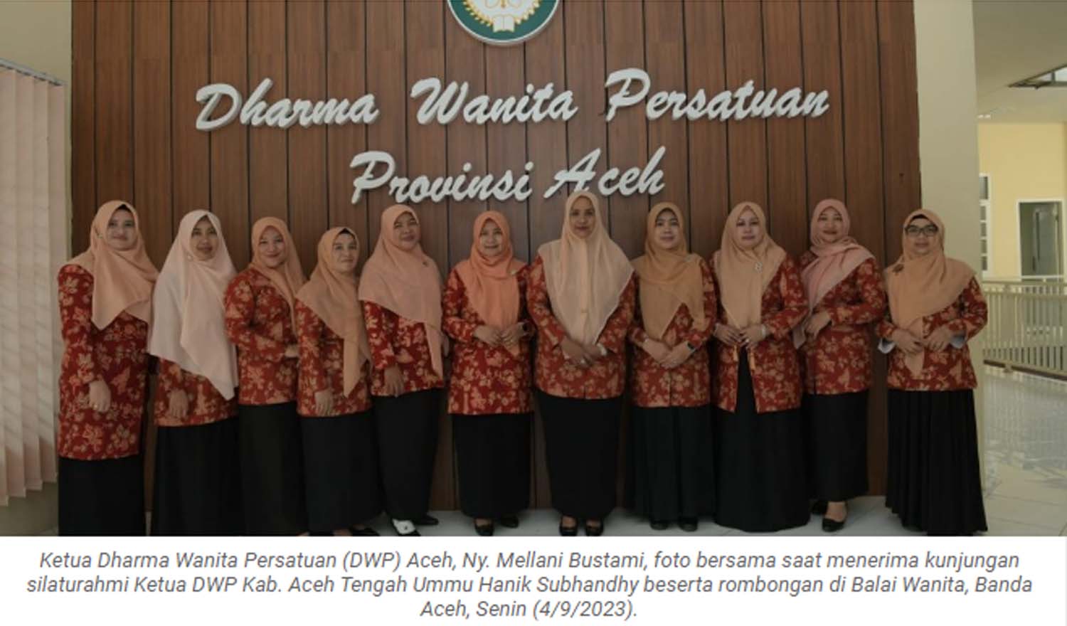 PopularPost.Id, Banda Aceh – Ketua Dharma Wanita Persatuan (DWP) Aceh Mellani Subarni, menerima kunjungan silaturrahmi Ketua DWP Kabupaten Aceh Tengah Ummu Hanik Subhandhy beserta rombongan, di Balai Wanita Lampineung, Senin (4/9/2023).