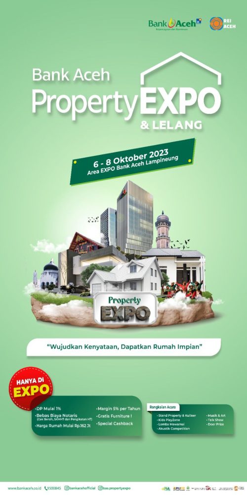 Ditambahkan, Bank Aceh Property Expo dan Lelang hadir untuk mempermudah masyarakat serta menjadi sarana konsultasi peserta pameran dan pengunjung yang ingin segera membeli hunian pribadi, investasi, maupun perencanaan property yang komprehensif.